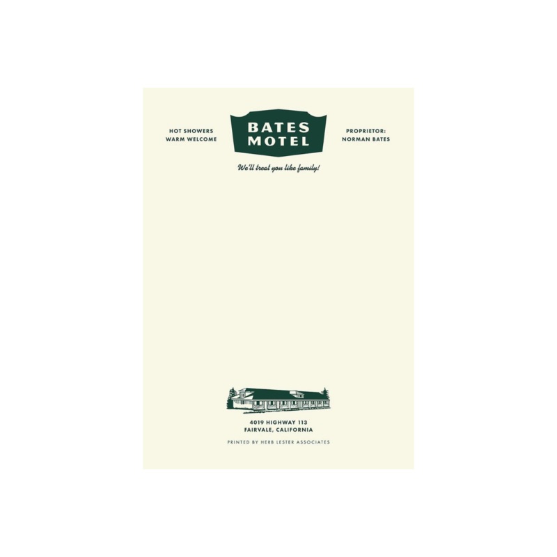 Includesone 50-page Bates Motel notepadsSize: 4" w x 5.5" hHeavy text-weight paper with a cardboard backLitho-printed in England on sustainably sourced, heavy text-weight paper with cardboard backsMade in the United Kingdom