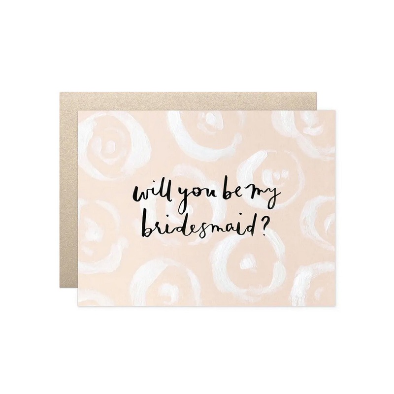 Blush and white florals are a sweet way to ask your favorite gals to stand by your side.A2 size (4 x 5 when folded)Blank interiorPaired with a gold leaf envelopePrinted full color on high quality cover paper
