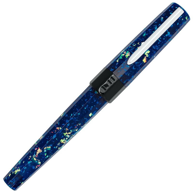 Introducing the Euphoria model from Benu. To highlight the visual appeal of the material,the body is covered with long facets. Each cut enables the true color and brilliance of the material to emerge, and helps prevent the pen from rolling away. Complemented by a black section, band on the cap, and a shiny silver clip, this pen is an eye catcher.