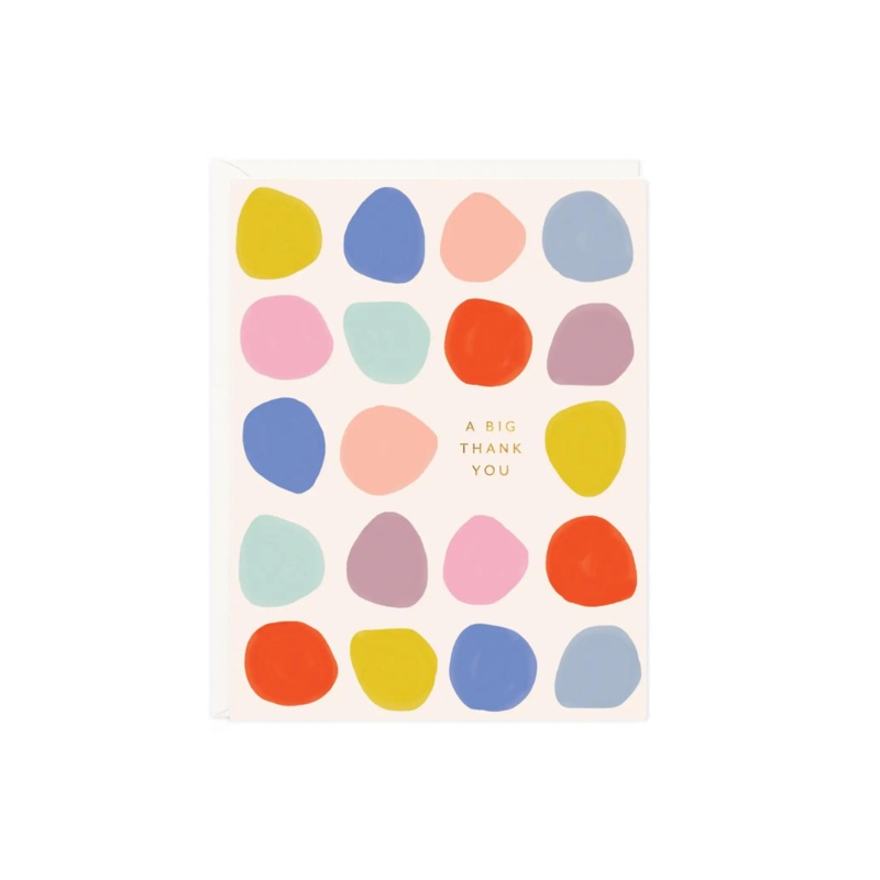 Big bold watercolor dots pair with gold foil lettering for the biggest of thank yous.