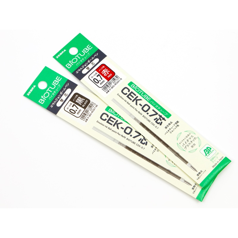 These water-resistant emulsion ink refills are compatible with the Biotube Jim Knock and come in .7mm tip size. Not only will your pen be eco-friendly, but your writing experience will be super smooth and comfortable. Your choice of red or black ink in singles or five packs.