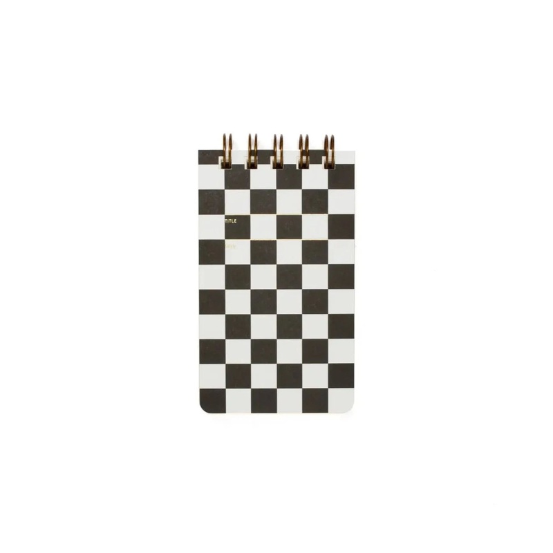 The Limited Edition Checker Black Pattern Reporter, a compact notebook for taking quick notes, sketching out ideas, or catching hot scoops. With a letterpressed cover and beautiful interior pages, this notebook was designed, printed and assembled by hand i
