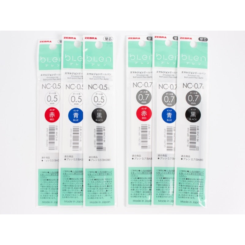 This refill is designed for the Zebra Blen. Available in .5mm and .7mm, in Blue, Red, and Black ballpoint ink.