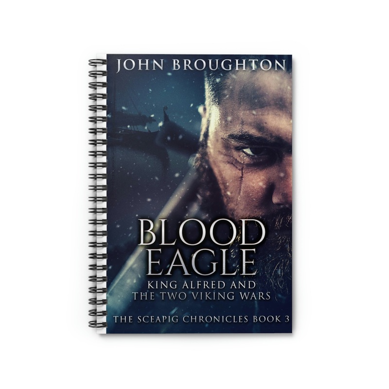 Shopping lists, school notes or poems – this 118 page spiral notebook with ruled line paper is a perfect companion in everyday life. The cover art in this spiral notebook is from John Broughton’s book, Blood Eagle.