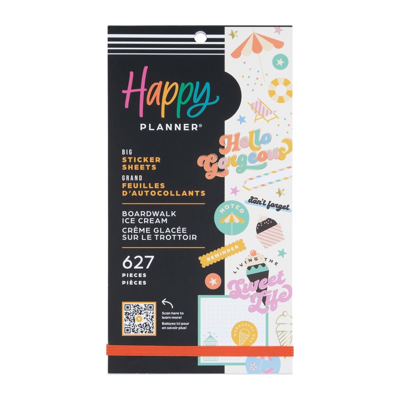 Plan like you’re steeped in summer with this Boardwalk Ice Cream sticker book. Use the bright colors and chill vibes to bring some fun to your layouts. Use in any Big size Happy Planner or notebook. Add to a bullet journal to create a customized structure and plan your biggest plans yet! Our high quality stickers are specially made for our unique line of Happy planning products.