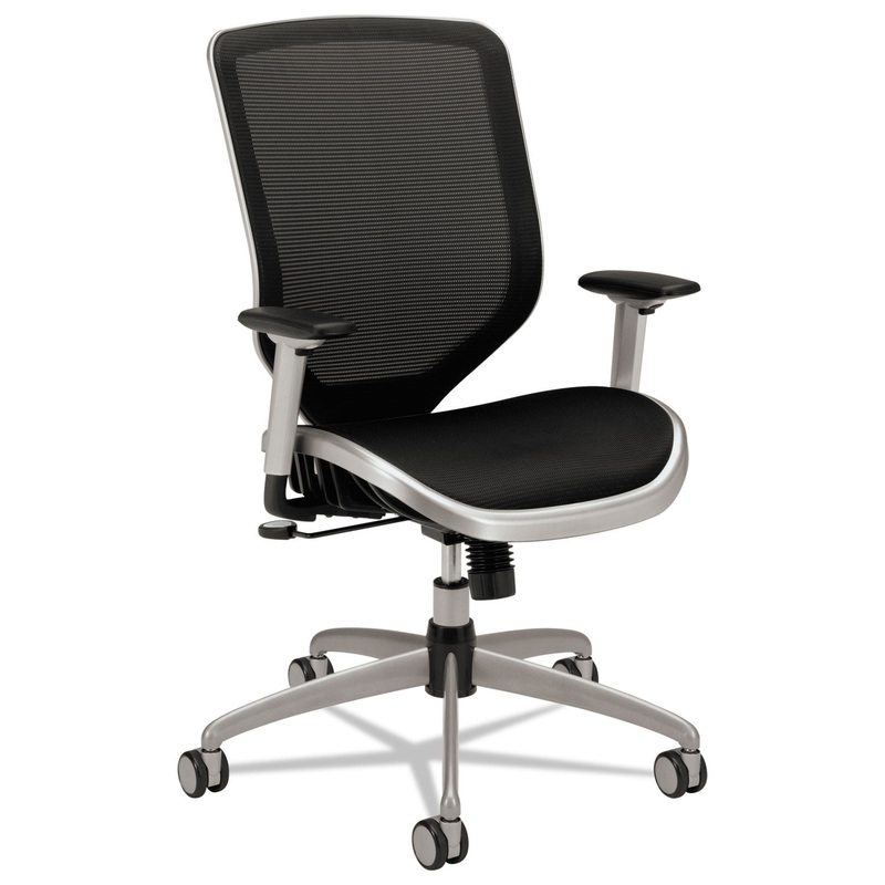 Breathable mesh seat and back for all-day comfort and support. Synchro-Tilt function and height-adjustable arms for a custom fit. Five-star base with casters for easy mobility.