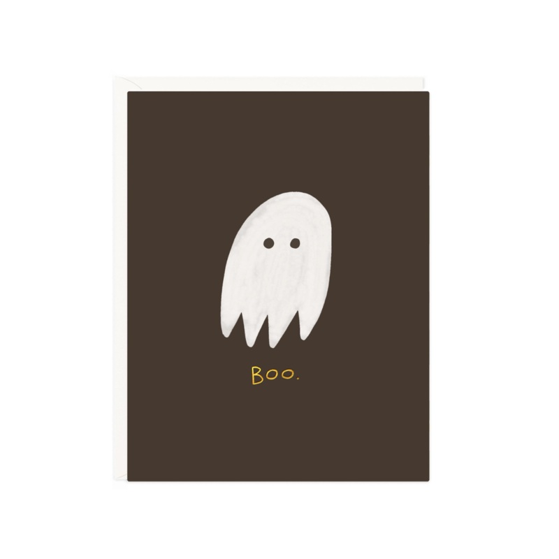 The friendliest little ghost to bring just a touch of spooky to this Halloween season.Size: A2 folded 4.25 x 5.5Inside: BlankPaper: Crisp white heavyweight paperEnvelope Color: pure whitePrinting Type: digital withgold foil