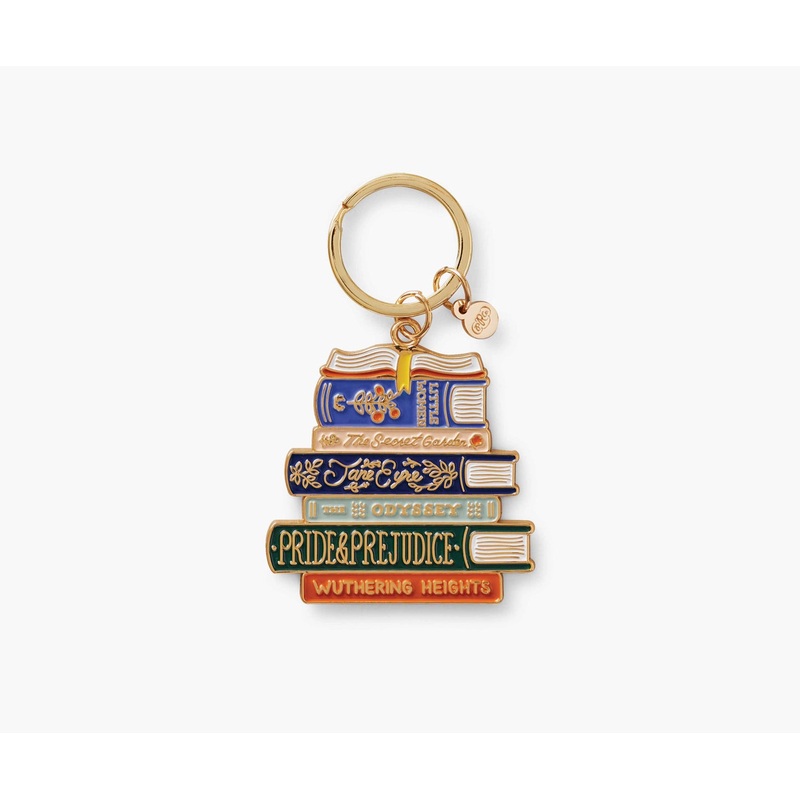 For the love of books. 2.4" L 1.75" WBrassPrinted in full color1" keyringPolished enamel with glossy finish