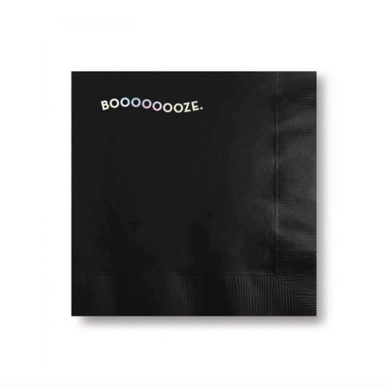 BOOOOOOOZE.Box of 20 napkinsSize: 5 x 5"Printing: Holographic foilColor: Black