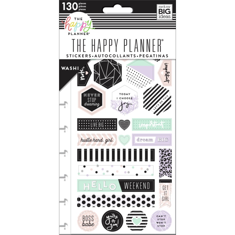 Live big and plan big with this Boss Babe washi sticker pack. Happy Planner stickers, made entirely of washi and ready to get things done!Each package includes: 5 sheets of patterned washi stickers ready for work on a pre-punched backer card. Easily snaps