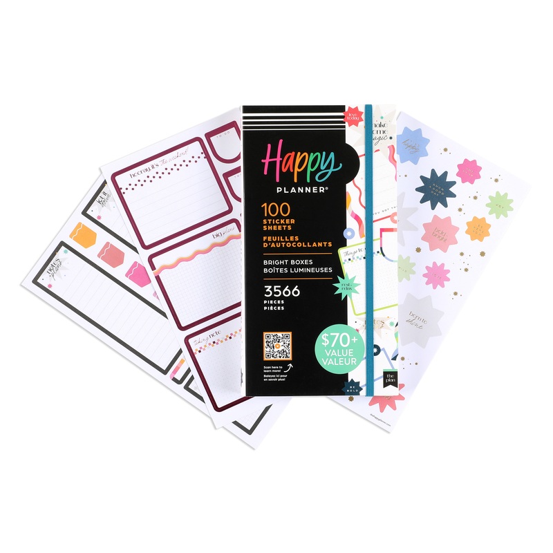 The Happy Planner Mega Value sticker pack is full of fun bright colors and memo boxes to amplify your year of planning (and beyond!). Notate important reminders, to-do lists, and weekend plans with an entire book of functional boxes. The only thing better