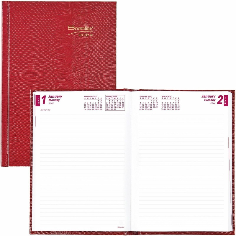Brownline Daily Planner – Daily – 1 Year – January 2024 – December 2024 – 1 Day Single Page Layout – 5 3/4″ x 8 1/4″ Sheet Size – Desktop – Red CoverNotepad – 1 Each