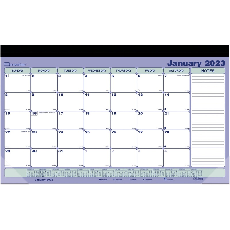 - Full-year calendar reference lets you refer to past and future dates
