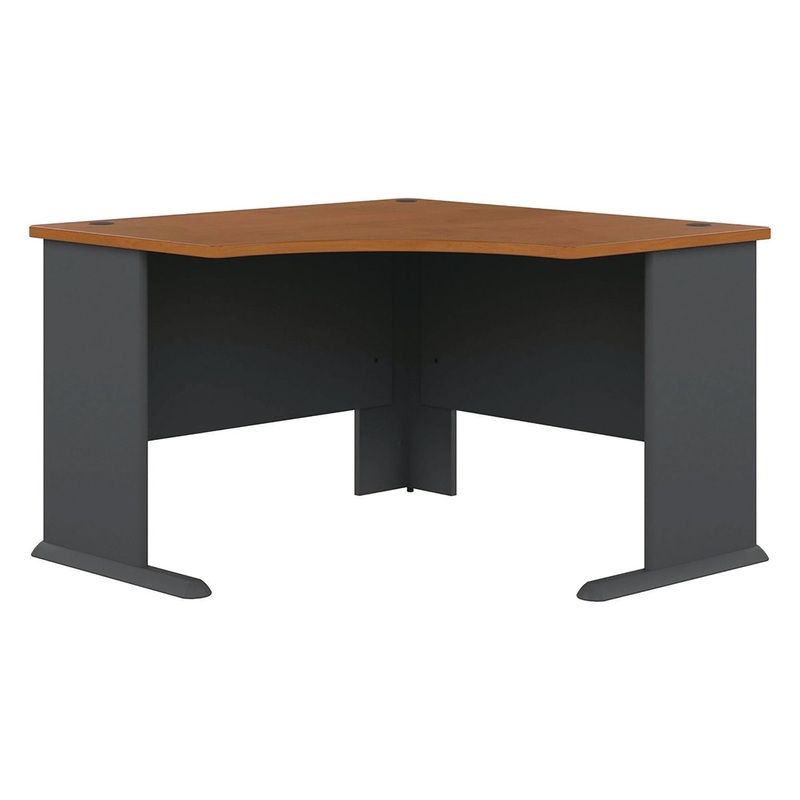 Series A Collection 48W Corner Desk is designed with a versatile C-Leg table design which permits easy configurations. Constructed with 100% thermally fused laminate for durability and superior resistance to scratches and stains. Use the 48W Corner Desk to connect Credenzas and Desks to expand your desk design. You’ll enjoy the integrated wire management located within both desktop and leg grommets to conceal cables to keep your desk area uncluttered. Sturdy molded ABS feet include adjustable levelers to compensate for uneven floors. Color: Natural Cherry; Slate Gray; Top Shape: Corner; Top Material: Melamine; Width Maximum: 47 1/4″.