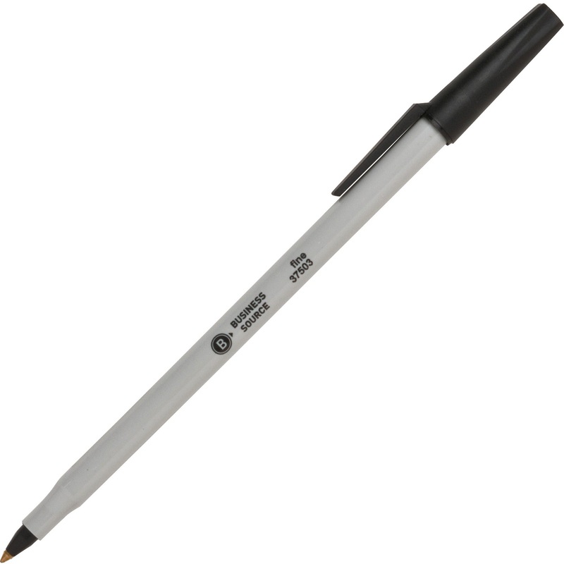 Business Source Fine Point Ballpoint Stick Pens – Fine Pen Point – Black – Light Gray Barrel – Stainless Steel Tip – 1 Dozen