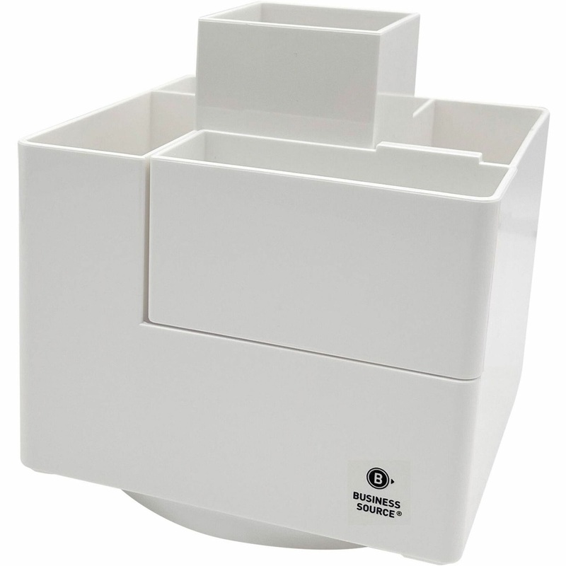 Modular Rotatable Pen Cup features a carousel design, allowing you to rotate and access supplies with ease. Sturdy bottom keeps the organizer in place while rotating. Six-compartment construction holds all your pens, pencils, scissors and any small office supplies to keep you organized and your desk clutter-free. One modular compartment can be placed on the side of the pen cup for optimal configuration. It is made of PET for superior durability and long-lasting use.