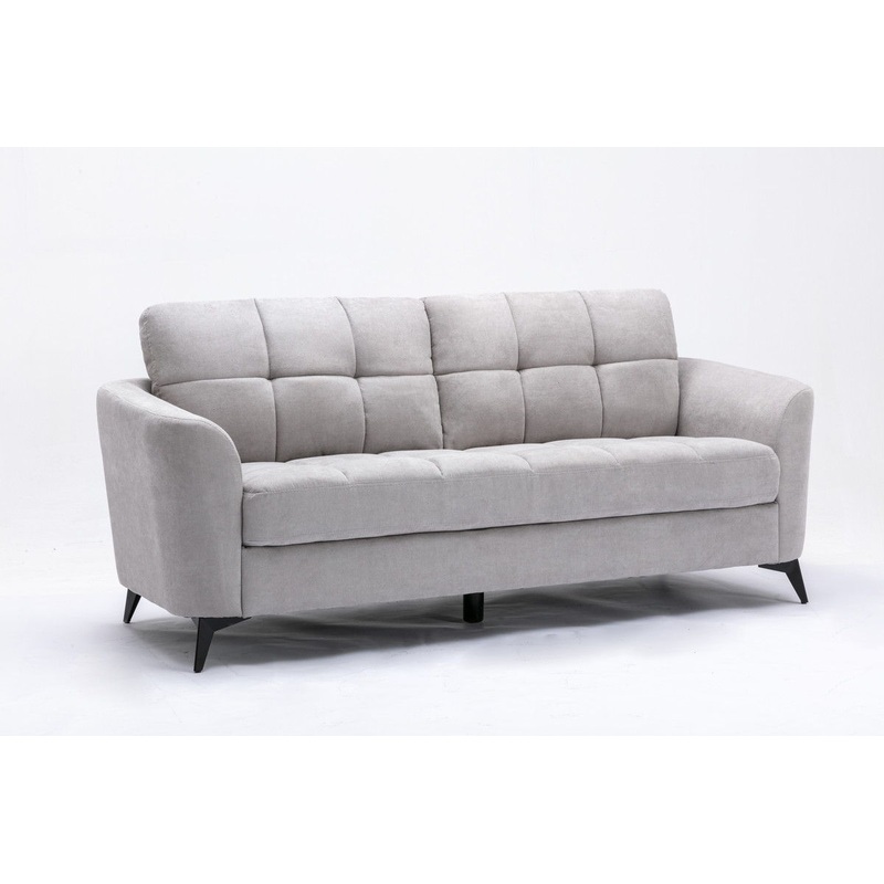 The Callie sofa provides world-class comfort and style with a tufted cushion design and metal legs. A great look for formal gatherings yet perfect for the family as well. The comfortable fabric will keep guests satisfied and looking elegant while the metal