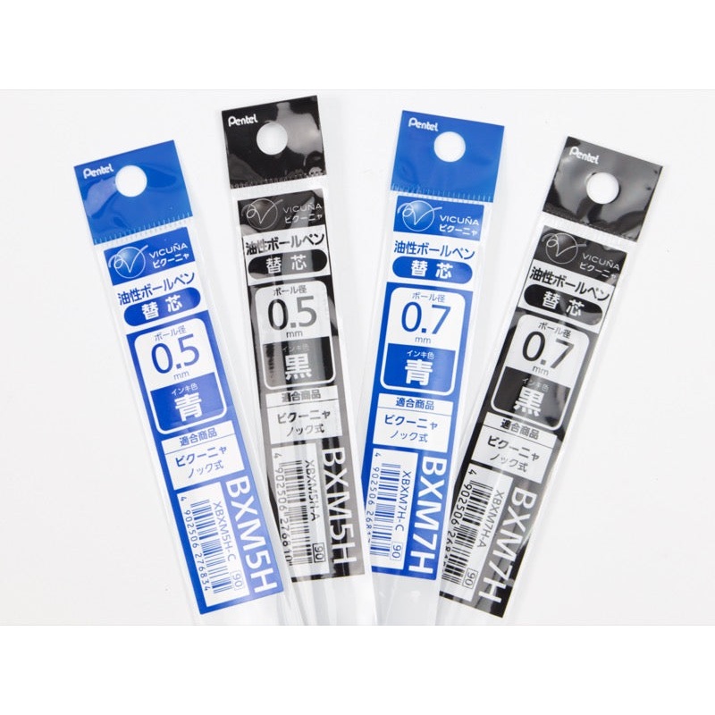This refill is compatible with the Pentel Calme and Pentel Vicua ballpoint pen. Available in Black, Blue, or Red ink, in your choice of .5mm or .7mm tip. Now available in NEW .35mm tip size! This is a very fine tip size, so we recommend it for our customer