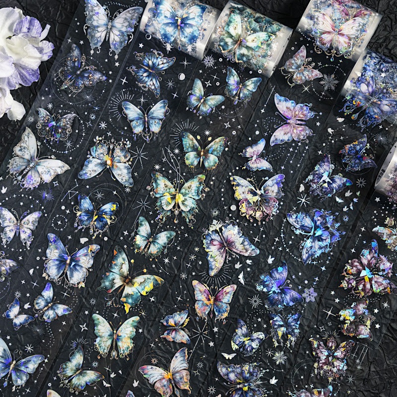 Let your creativity take flight with the Celestial Butterflies Clear Masking Tapes! These ethereal tapes are adorned with magical butterflies in dazzling hues, sparkling stars, and shimmering foil details that dance in the lightperfect for turning any project into a dreamy masterpiece.