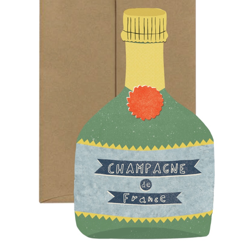 The Champagne card, a fun way to say congratulations, celebrate a special occasion or invite friends for a drink! Send mail with a French touch. A6 - 6.25x4.5" die cut folded card, printed in the USA on sustainably produced 18pt coated card stock.Each fold