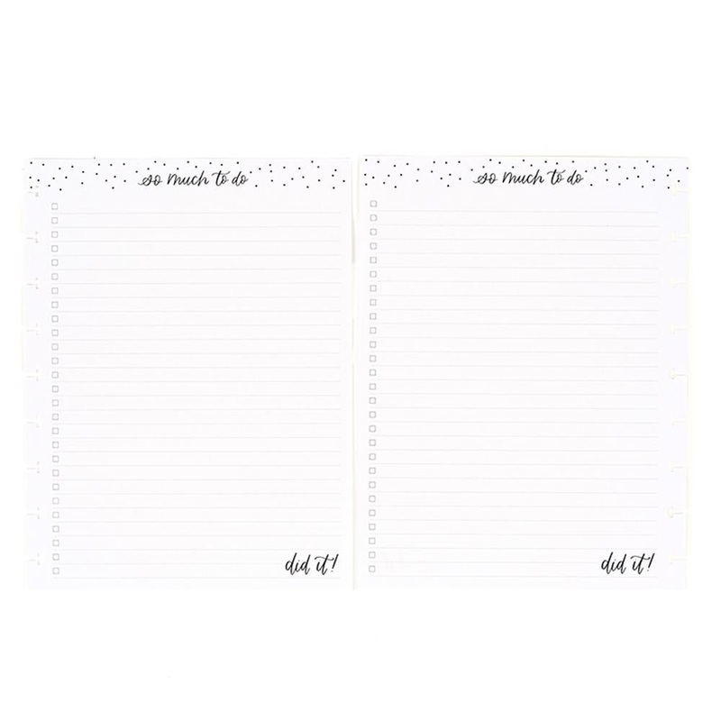 With so much to do, use this filler paper to stay on track. This Classic size filler paper includes front and back lined pages with check mark boxes at the margin to cross off your tasks as you go. This pack includes 40 sheets and fits into Classic size Happy Planners, notebooks, and journals. Add utility to your items by adding in these sheets!