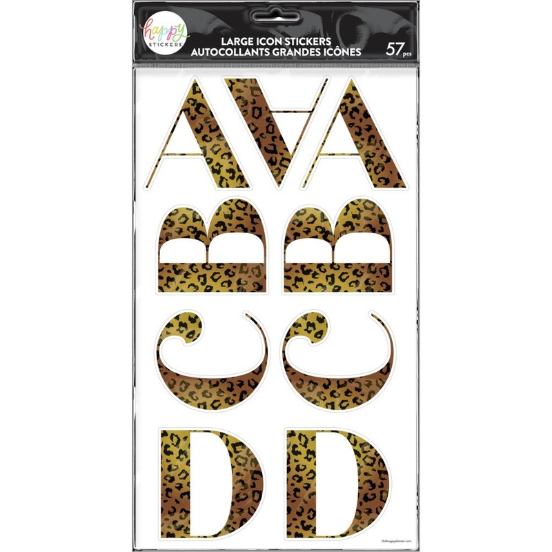 Get wild with leopard print decals. Spell out words, phrases and more with these alphabet stickers. These large icons are ideal for whiteboards and glass surfaces, just peel and stick! This set includes 6 sheets with 57 individual stickers.Make it easy to