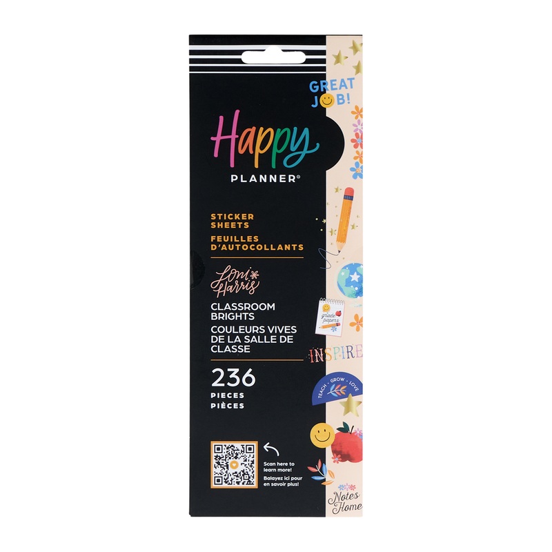 Love to inspire, live to teach with this Classroom Brights 8 sheet teacher planner sticker pack. These fun and functional teacher planner stickers will assist in making your classroom plans in order. Use in any teacher Happy Planner or notebook. 8 sheets o