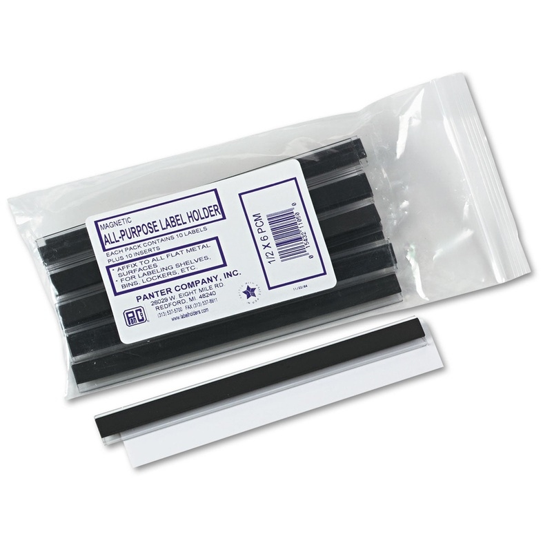 Clear plastic holders with magnetic backings for easy repositioning or removal from metal surfaces. They easily attach to file cabinets, printer cabinets, drawers, shelves, and other metal surfaces which require labeling. Heavy-duty plastic lets you change