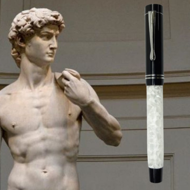 We have created three tribute pens to the great master of the Renaissance and are calling them Da Vinci, Michelangelo, Raphael. The model range is expanded to include one color choices of Purple (Pink) , (Batic) Blue, Flashy Blue, Glacier Blue, Jade Green, and Ruby Red! New Polar White model is all white with Gold Trim! Flex Nibs also available!