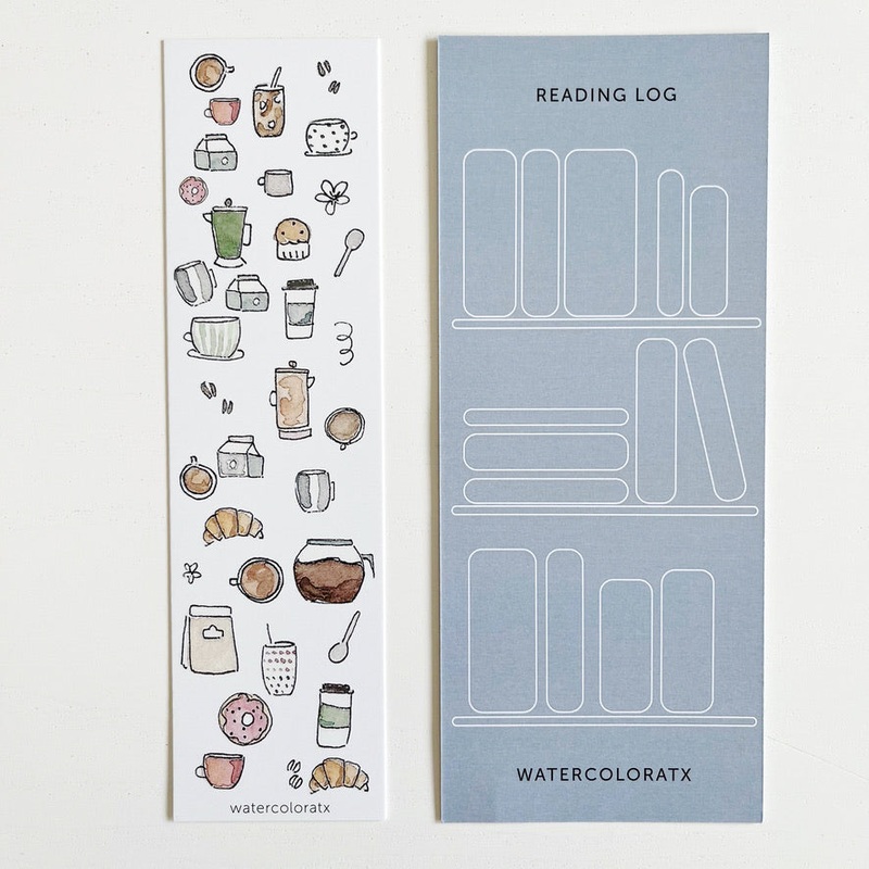 Mark your page in your favorite book or notebook with this cute coffee themed bookmark! It features watercolor illustrations of coffee icons by a local Austin artist.