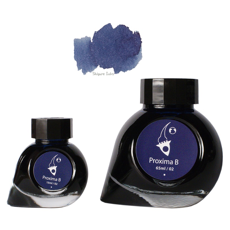 Colorverse Proxima B is a shading blue fountain pen ink. Comes with two glass bottles – one 65ml and one 15ml.