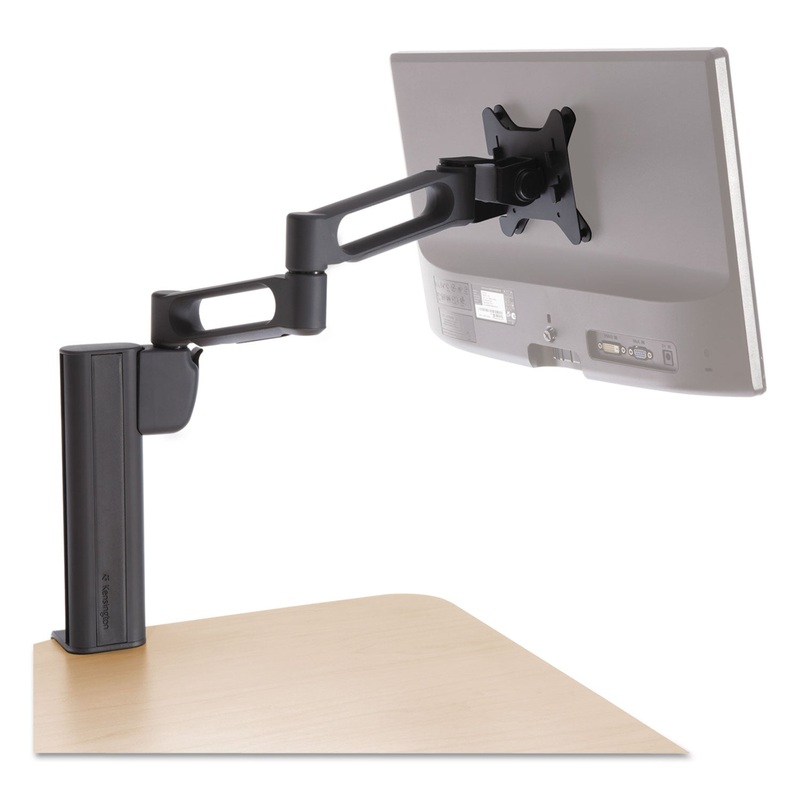Color-coded SmartFit system positions monitor at optimal viewing level, reducing eye and neck strain. Monitor arm extends 17". Effortless vertical and horizontal adjustment raises productivity. Dual pivot points allow user to move monitor close. Cable mana