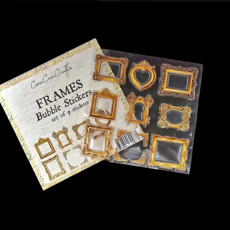 Elevate your projects with CoraCreaCrafts Frames Bubble Stickers. These 9 exquisite puff stickers in elegant golden frames add a luxurious 3D effect. An exclusive touch to elevate your crafting to the next level.1 sheet