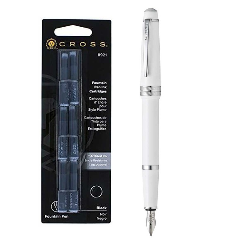 Cross Bailey Light, White Fountain Pen Extra Fine AT0746-2XS + 6 Black Cartridges