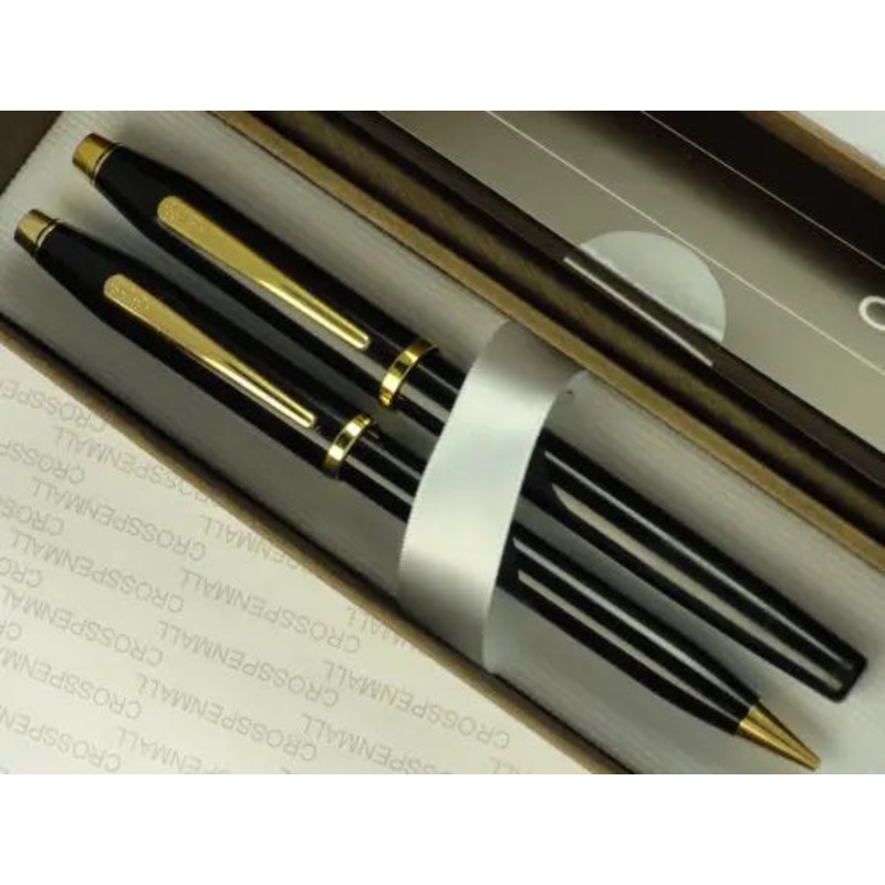 Cross Made in The USA Century II Black Lacquer and 23k Gold Appointment Rolled/Filled Ballpoint Pen & 0.5MM Pencil Set