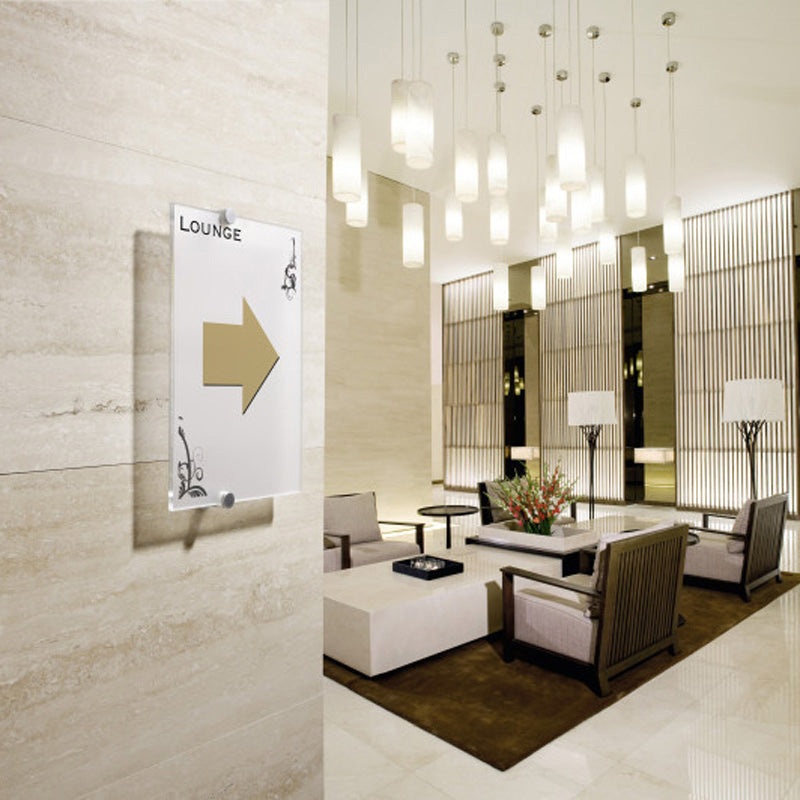 Sign Holders include standoff posts, acrylic back panel, acrylic faceplate, 2 micro-perforated Mylar inserts, and mounting hardware