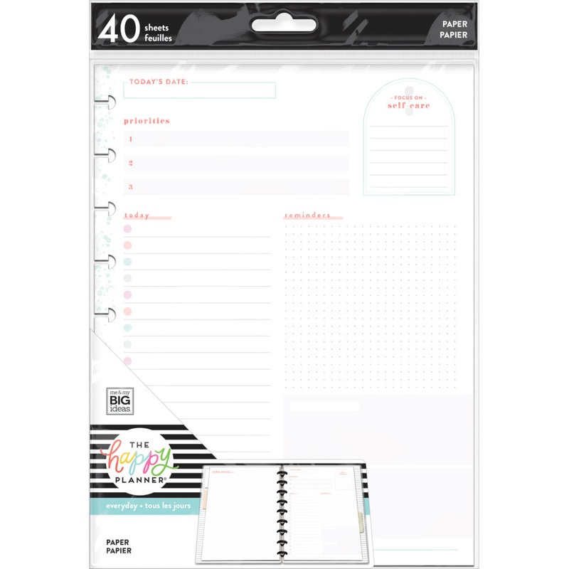 Stay on top of daily taskswith this classic filler paper. It includes a space to write the date, add top priorities for the day and make checklists. The back features an open dot grid for note taking or anything else you need to prepare for the day ahead.