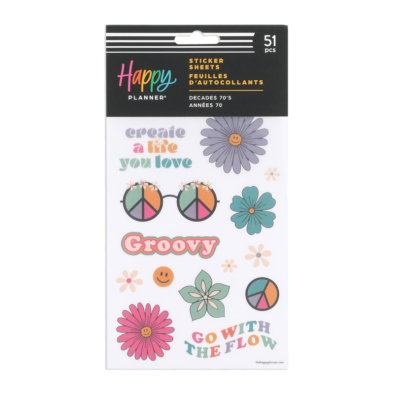 Stay golden. These sticker sheets feature disco balls, groovy designs, and 1970s vibes. Add these to your scrapbooks, Memory Keeping Journals, or Happy Planner spreads love the season you're in.5 sticker sheets include 51 stickersAdd these stickers to your