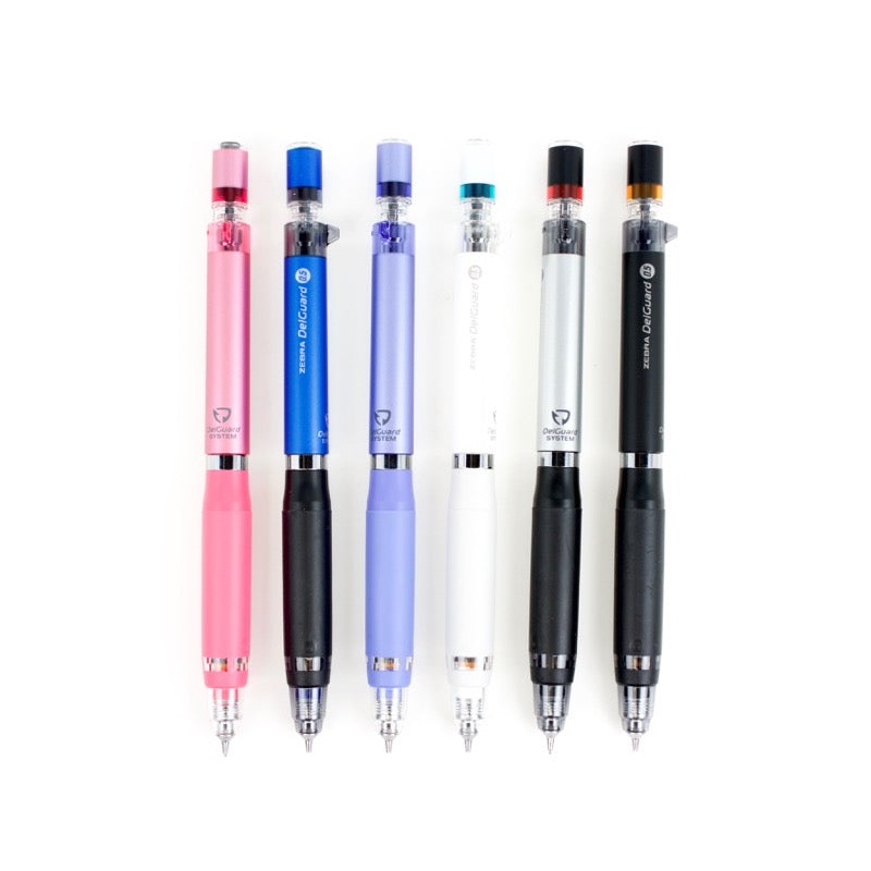 The DelGuard ER has the same great spring loaded tip that protects your lead while you're writing, with the addition of an automatic eraser! The eraser comes out on its own when you turn it upside down to use it, and tucks away when you go back to writing.