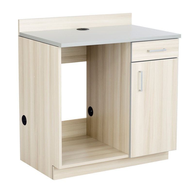 Our Hospitality Cabinets feature a versatile, modular design.All cabinets are constructed using 3/4″ thermal fused, scratch-resistant melamine laminate. Models with doors feature adjustable soft-close chrome-plated European hinges and 2mm PVC edgebanding, and models with enclosed cabinetry feature adjustable shelving. Individual cabinets attach securely together with metal connector pins, and the design of the Appliance Hutch allows easy installation with any base cabinet. The cabinets feature color-matched exterior and interior. Wall mounting hardware not included.