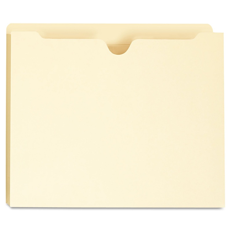Great for taking files out of the office. Full-height side gusset keeps materials from slipping out. Back tab is 1/2" higher than front for indexing. Thumb cut for easy access. Durable Manila construction.