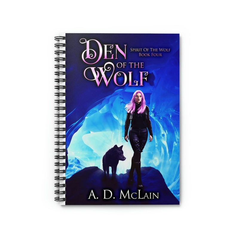 Shopping lists, school notes or poems - this 118 page spiral notebook with ruled line paper is a perfect companion in everyday life. The cover art in this spiral notebook is from A.D. McLain's book, Den Of The Wolf.