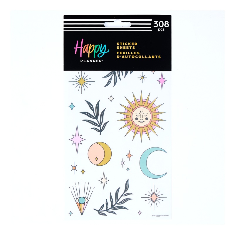 Choose to shine with this Desert Mystic 10 sheets of inspirational stickers. Add new-age flair to any Happy Planner, notebook, desk or wall calendar and express your creativity.10 sticker sheets with 308 stickersIncludes inspirational quotes, moons and sta