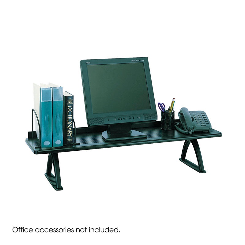 DetailsWe always need, just a little extra! The extra wide, 12" deep shelf allows for binders, telephone, monitor, DeskJet printer or other desk accessories to be stored. Features shelf dividers to keep books and binders upright and orderly, and a retainer