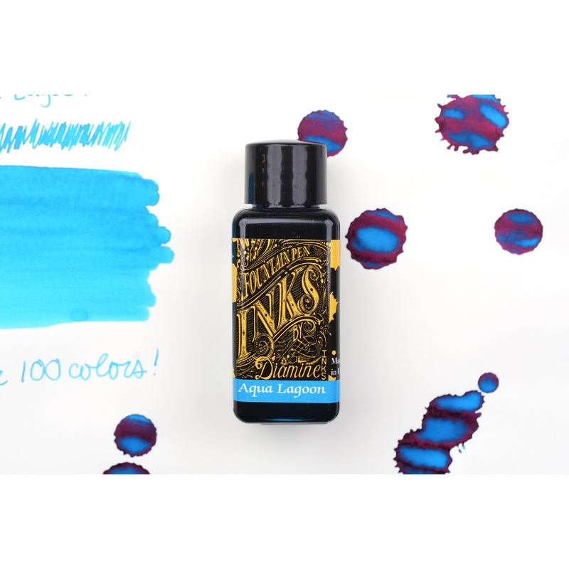 Diamine Fountain Pen Ink - Aqua Lagoon - 30mL.Aqua LagoonStandard30mLMore DiamineInksAbout Diamine:Diamine inks have been manufactured in the United Kingdom since 1864. They are well-known for their fine quality fountain pen ink, calligraphy/drawing ink, a