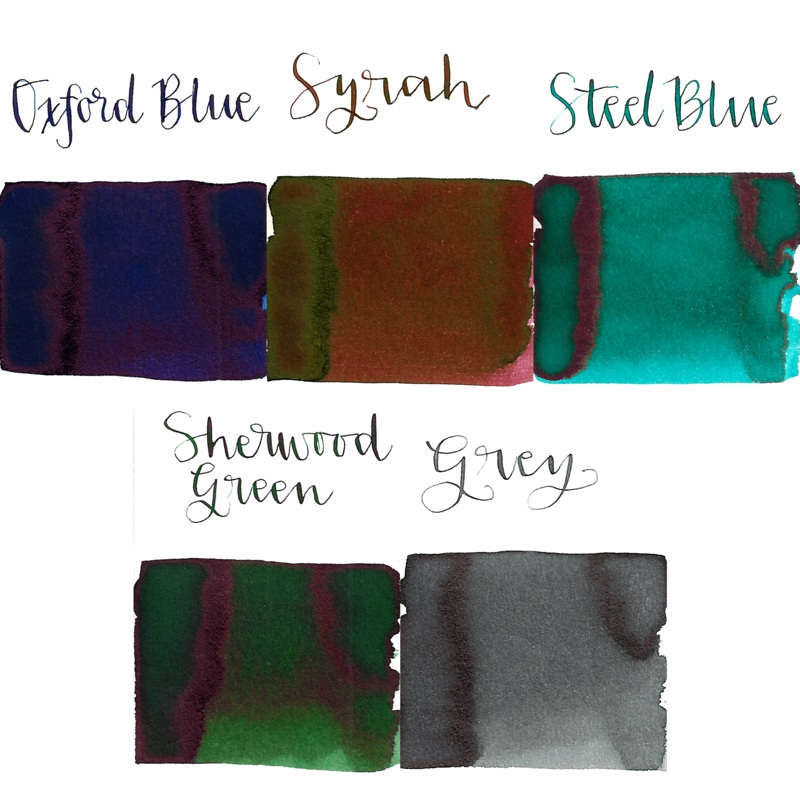 Box of 20 Standard International Short cartridges.4 each of :Oxford Blue, Syrah, Steel Blue, Sherwood Green, GreyMade in England.