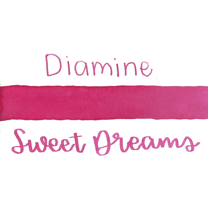 Diamine Purple EditionSweet Dreams is a scented magenta pink fountain pen ink. It dries in 30 seconds in a medium nib on Rhodia and has an average flow.BrandDiamineInk NameSweet DreamsCountryof OriginEnglandColorPinkDry Time30 Seconds (Pilot Vanishing Poin