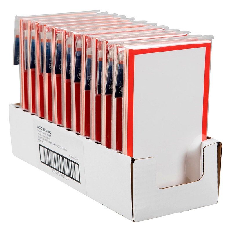 5XW7S717DISPLAY TICKET QUIKSTIK 75X125MM RED BORDER PK10 G58219