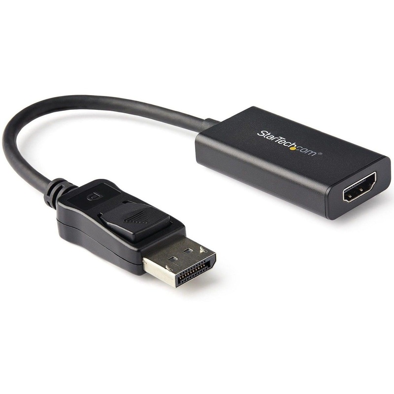 Delivering enriched presentations True 4K at 60Hz and HDR The DisplayPort to HDMI adapter is fully compatible with your HDMI 2.0b equipment, supporting resolutions up to 4K 60Hz (3840 x 2160) and bandwidths up to 18Gbps. The adapter offers 4:4:4 chroma subsampling, so every pixel gets its own unique color. It’s also backward compatible with earlier versions of HDMI and DisplayPort at their supported maximum resolutions. With HDR support, you can enjoy lifelike images with increased contrast, brightness and colors and greater luminosity than standard digital imaging. Ideal for Travel This lightweight video adapter is highly portable, with a small footprint design. It’s the perfect accessory for your DP supported devices, fitting easily into your carrying case. Hassle-Free Setup To ensure easy operation and installation, this unique DP to HDMI adapter allows for plug-and-play installation without any additional software or drivers. DP2HD4K60H is backed by a 3-year StarTech.com warranty and free lifetime technical support.