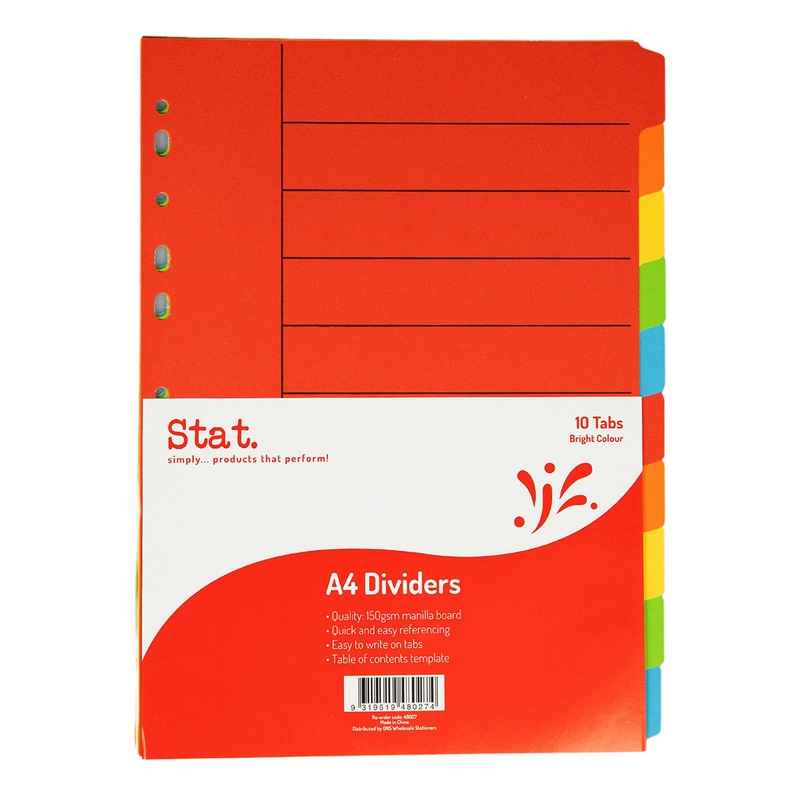 DIVIDERS STAT A4 BRIGHT COLOURS MANILLA 10 TAB G48027